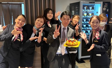 いつもスタッフ皆との対話を欠かさず、困った時はいつでも助けてくださる、頼もしい支配人のお祝いをしました!皆が楽しく働けるように雰囲気をつくってくださっていますこと、感謝感謝です^^
